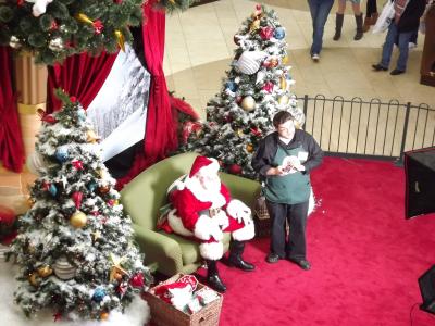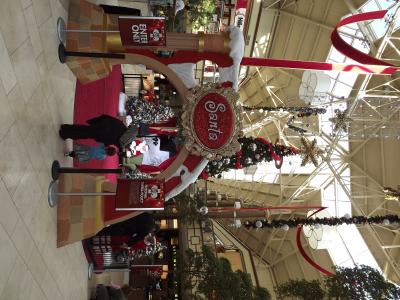 Freitagmorgen war ich mit meiner Hostmum und Violet in der Mall, da sie Bilder mit dem Weihnachtsmann machen wollten. Es war gar nicht so einfach, obwohl Violet erst immer nur von Santa Claus geredet hat, hatte sie dann doch plötzlich Angst und wir haben leider kein lächelndes Bild bekommen können… :(