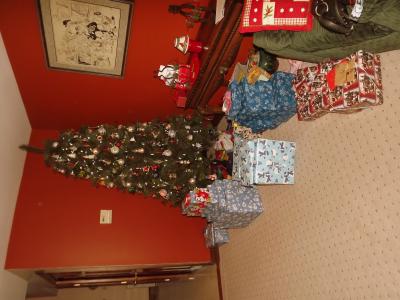 Am nächsten Morgen als ich aufgestanden bin lagen schon alle Geschenke da! Immer in Stapeln für die jeweilige Person! Erspart das gesuchte unterm Tannenbaum, wo eh nicht alle Geschenke runter gepasst haben! :D
